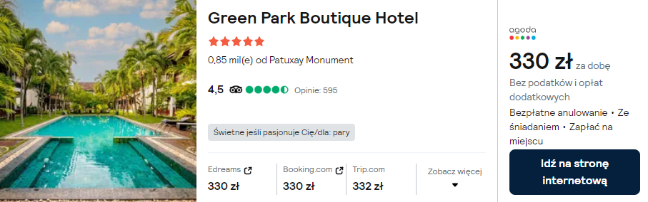 W stolicy Laosu zarezerwuj wspaniały 5* hotel Green Park Boutique. Będzie to doskonały ostatni akcent azjatyckiej eskapady.