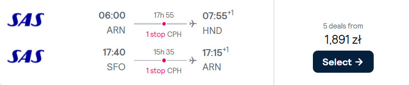 Sztokholm – Tokio Haneda oraz San Francisco – Sztokholm »