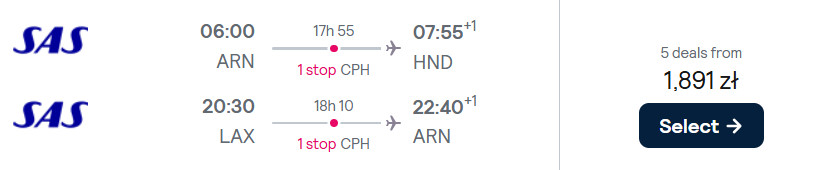 Sztokholm – Tokio Haneda oraz Los Angeles – Sztokholm »
