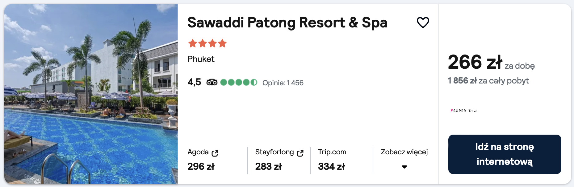 Na Phuket polecam noclegi w 4* Sawaddi Patong Resort & Spa, który jest znakomicie oceniany przez dotychczasowych gości.
