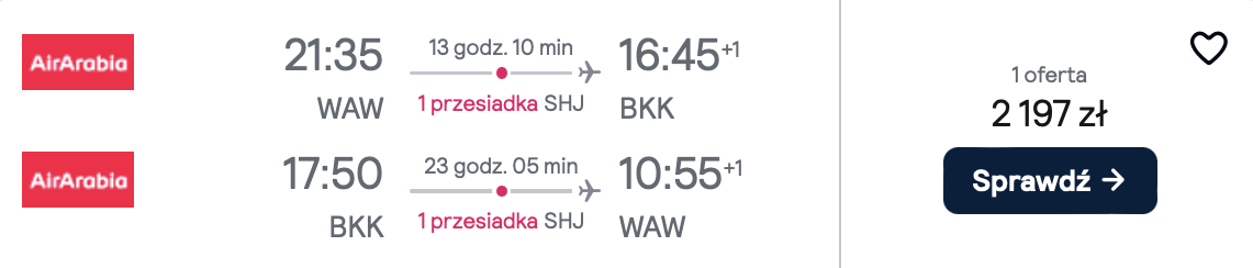 Do Azji udasz się z Warszawy w styczniu. W obie strony polecisz linią Air Arabia z przesiadkami w Szardży. To niedawno ogłoszona trasa z Polski! Możesz wybrać się do Bangkoku, Sri Lanki i na Phuket.