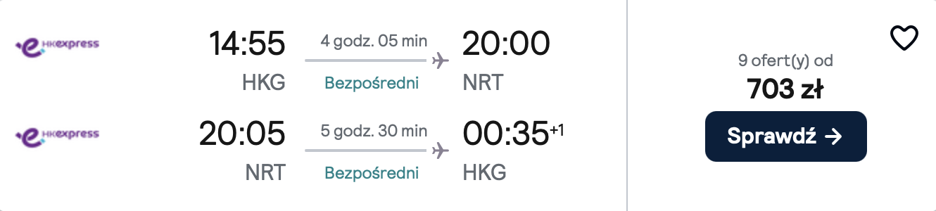 W podróż wybierzesz się w terminie 25 (26) stycznia-9 (10) lutego 2026. Pierwszym jej etapem będzie lot z Warszawy lub Krakowa do Hongkongu z przesiadką w Amsterdamie linią KLM. 30 stycznia polecisz do stolicy Japonii. 7 (8) lutego wrócisz do Hongkongu i dzień później do Polski. W ceny biletów w obu liniach lotniczych wliczony został bagaż podręczny oraz przedmiot osobisty.