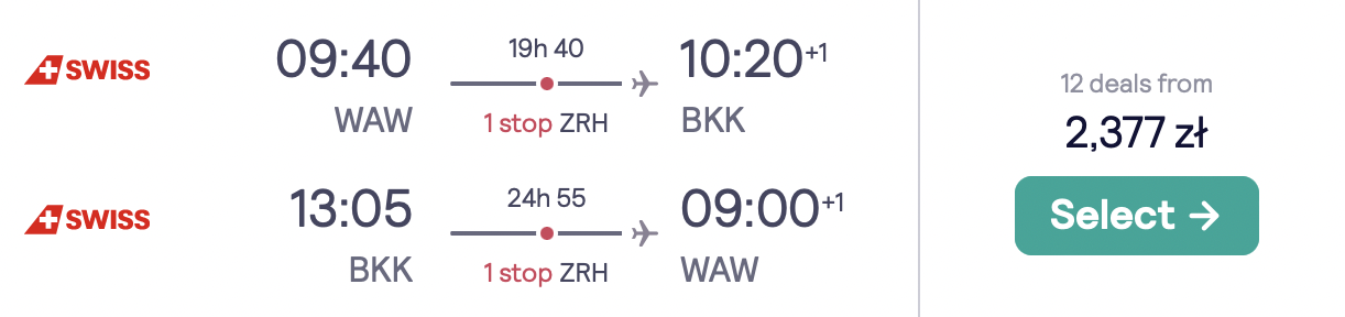 Podróżować będziecie na pokładach samolotów linii lotniczych Swiss i Thai AirAsia. Pamiętajcie też, że bez dodatkowych opłat możecie zabrać jedynie bagaż podręczny. Jeśli nie wiecie jak się spakować, przeczytajcie nasz poradnik. Z pewnością wam pomoże!