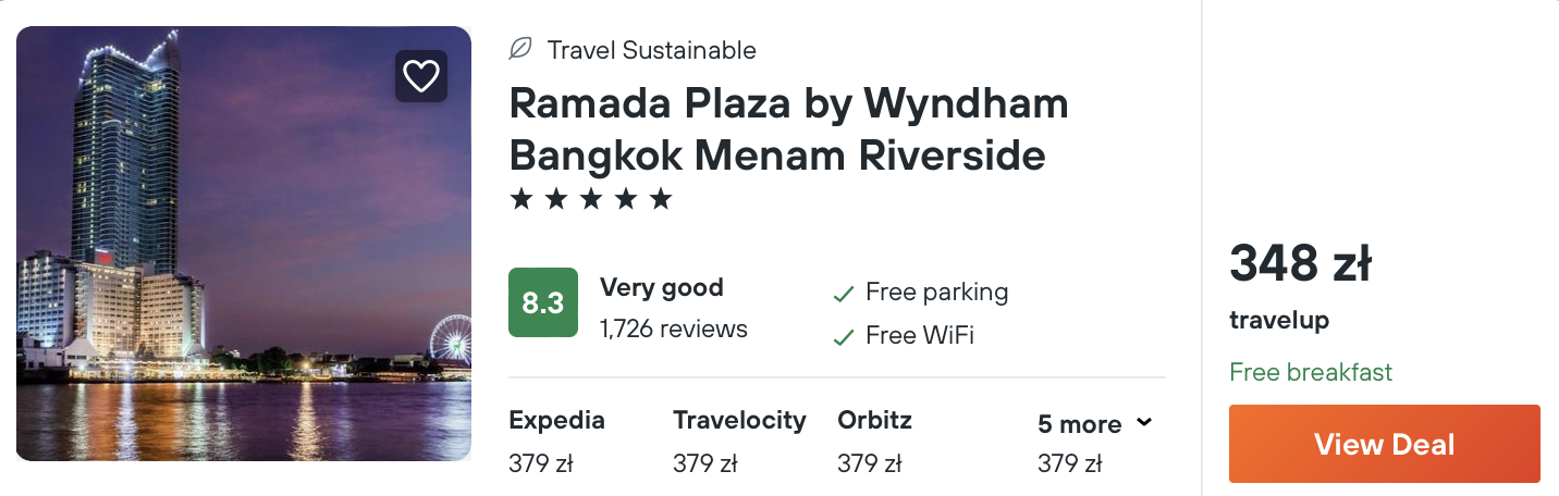 W Bangkoku postawcie na 5* hotel Ramada Plaza by Wyndham. To nowoczesny i luksusowy obiekt zlokalizowany w samym centrum miasta. W cenę wliczono śniadania