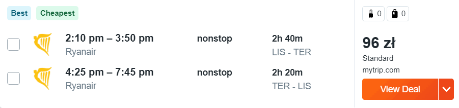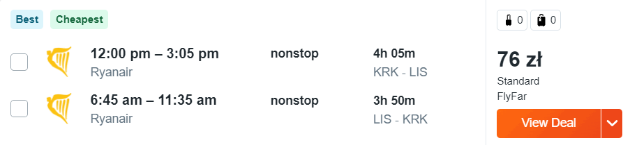 Wycieczkę rozpoczniecie i zakończycie na krakowskim lotnisku w Balicach. Waszym pierwszym przystankiem będzie wspomniana stolica Portugalii, skąd po 3 dniach ruszycie do miejscowości Lajes na Azorach. Oba loty są bezpośrednie, a w obie strony podróżować będziecie na pokładach samolotów linii Ryanair. Pamiętajcie, że bez dodatkowych kosztów zabrać ze sobą będziecie mogli tylko mały bagaż podręczny.
