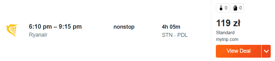 Wycieczkę rozpoczniecie 20 listopada lotem z warszawskiego lotniska w Modlinie do stolicy Anglii (Londyn Stansted), skąd po przerwie trwającej prawie 5 godzin udacie się na Azory (Ponta Delgada). Oba przeloty odbędziecie na pokładach samolotów linii Ryanair. Pomiędzy wyspami Sao Miguel a Maderą podróżować będziecie z linią SATA Air Acores.