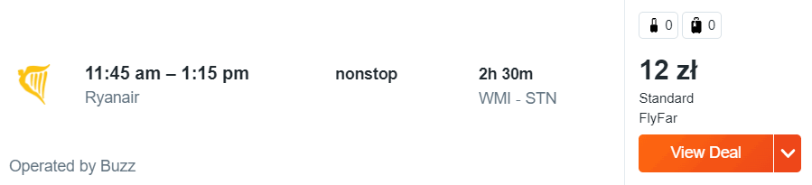 Warszawa Modlin – Londyn Stansted 20.11