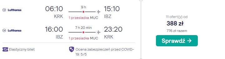 Na wycieczkę do Hiszpanii wybierzecie się w gorącym, wakacyjnym terminie 8 – 15 lipca. Czekają was loty z krakowskiego lotniska na pokładzie samolotów linii lotniczej Lufthansa – jedynego europejskiego 5* przewoźnika. Po drodze zaplanowano bezpieczne, gwarantowane przez linię lotniczą przesiadki w Monachium.