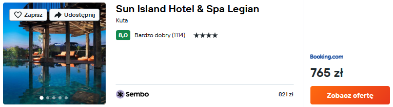 Wybrałem noclegi w bardzo dobrze ocenianym 4* Sun Island Hotel & Spa Legian. To świetny pomysł na beztroski relaks i odpoczynek po dniu pełnym atrakcji i zwiedzania.