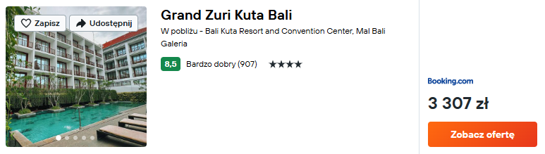 Wybrałem noclegi w 4* hotelu Grand Zuri Kuta Bali. Dogodna lokalizacja oraz komfortowe wnętrza sprawdzą się na długi pobyt – również dla osób, które w trakcie wyjazdu planują pracować zdalnie.