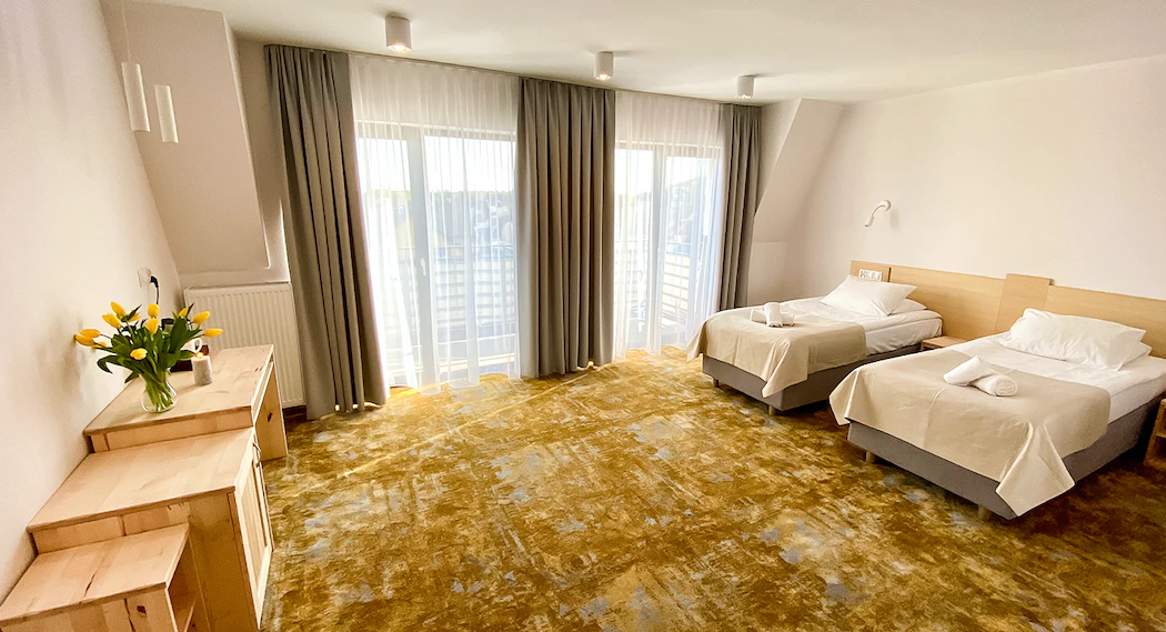 Najniższą cenę (284 PLN/2 osoby) za noc uzyskacie, decydując się na co najmniej 2-dniowy pobyt.
