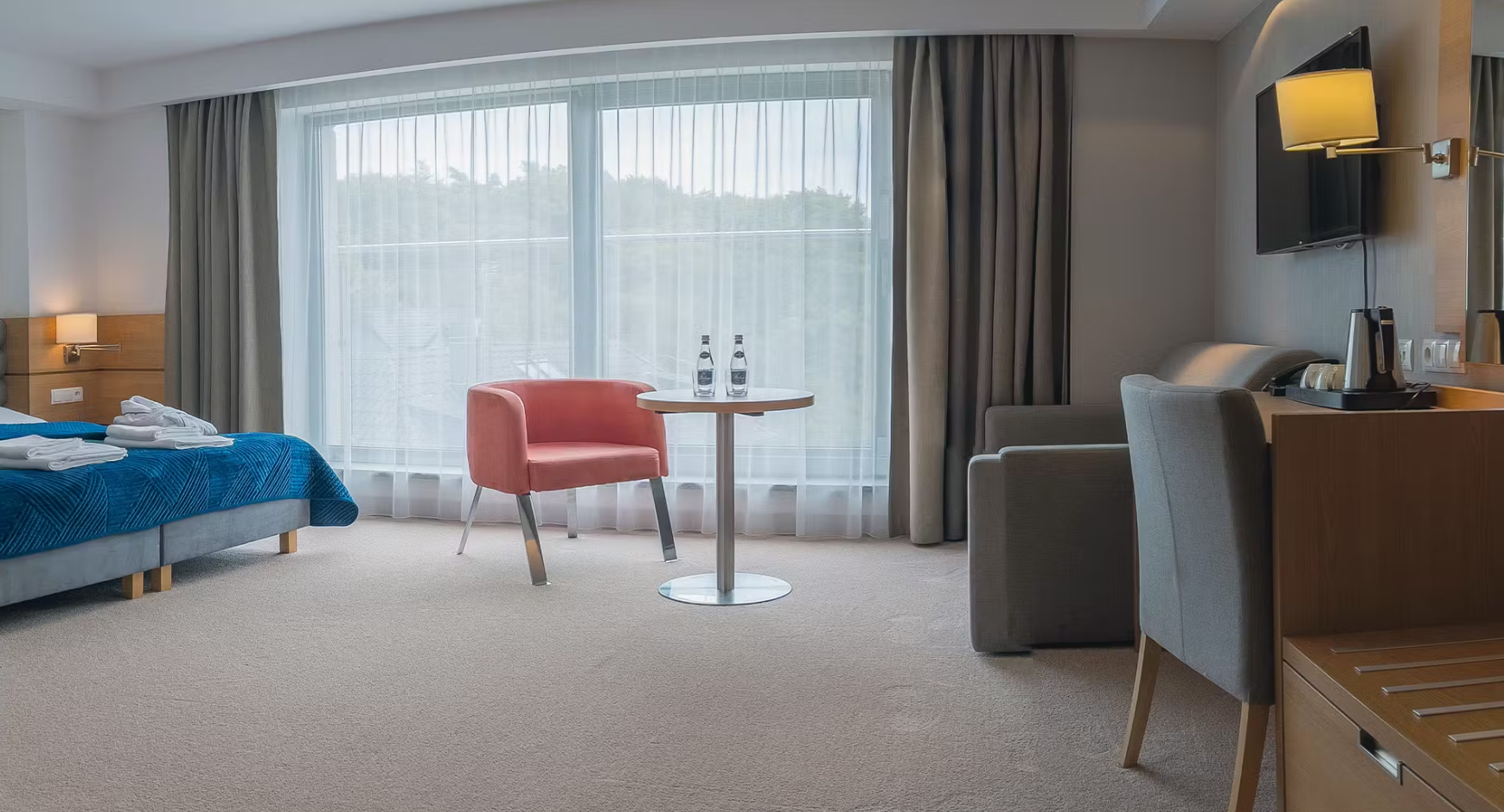 W cenie otrzymasz noclegi w komfortowo wyposażonym pokoju oraz śniadania i obiadokolacje. W pakiecie dostaniesz również dostęp do strefy wellness (sauna sucha, sauna infrared, sauna ziołowa, strefa wypoczynku, lodopad), wstęp do hotelowego kompleksu basenowego z brodzikiem dla dzieci, jacuzzi, przeciwprądami oraz strefą wypoczynku, pokój zabaw dla najmłodszych i Internet WiFi.