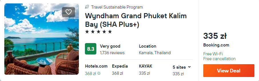 Na Phuket zatrzymaj się w luksusowym 5* hotelu Wyndham Grand. Z obiektu rozpościera się malowniczy widok na wybrzeże. Do twojej dyspozycji będzie nowoczesny pokój z prywatną łazienką, basen i strefa spa.