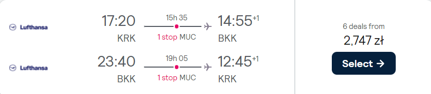 Linia lotnicza: Lufthansa, Nok Air i Bangkok Airways