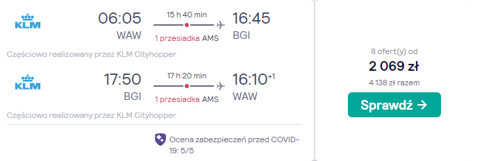 W karaibską podróż wybierzecie się na początku przyszłego roku, w terminie obejmującym święto Trzech Króli: 6 – 17 stycznia 2022 r. Czekają was loty z warszawskiego lotniska im. Fryderyka Chopina, realizowane na pokładzie samolotów linii lotniczej KLM. Po drodze czekają was bezpieczne, komfortowe przesiadki w Amsterdamie.