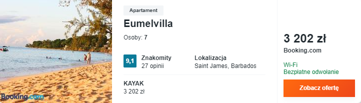 Na Barbadosie wybrałem dla was noclegi niedaleko plaży – w pensjonacie Eumelvilla. Do waszej dyspozycji będą tam klimatyzowane pokoje z telewizorem LCD oraz prywatną łazienką, taras z miejscem na grilla oraz… prywatny basen! W sam raz na beztroską ucieczkę od zimy.