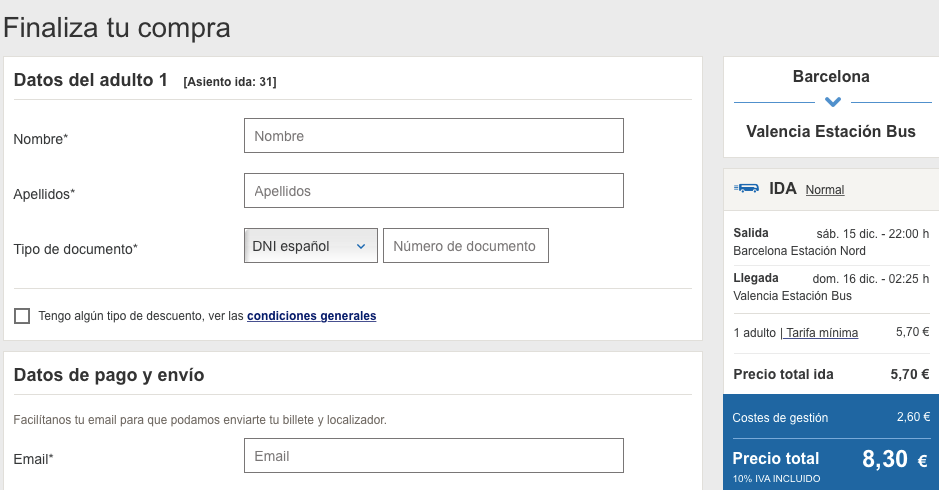 Alsa | Barcelona – Walencja | 8.30 EUR (ok. 36 PLN) | 15 grudnia
