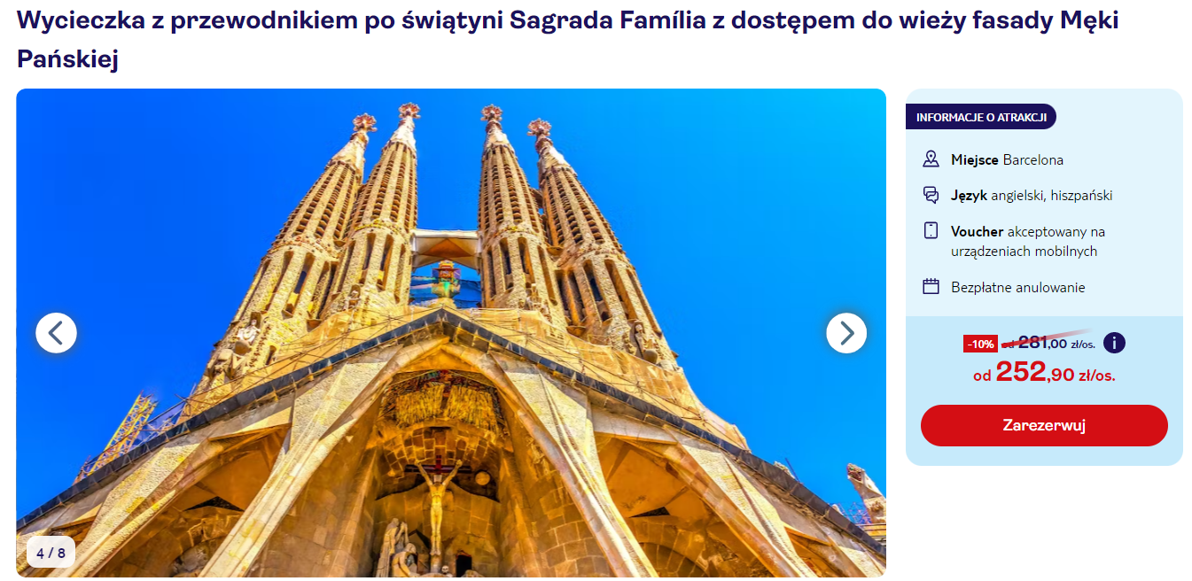 Kościół Sagrada Familia to ikona stolicy Katalonii. Chętnie zajrzysz do środka? W takim razie zadbaj o bilet wstępu z wyprzedzeniem, dzięki temu unikniesz stania w kolejce.