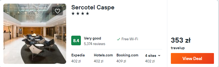 Niewiele więcej zapłacisz za pobyt w 4* hotelu Sercotel Caspe, który od stacji metra Arc de Triomf oddalony jest o 5 minut spokojnego spaceru. Na terenie obiektu znajduje się dobrze wyposażone centrum fitness. We wszystkich pomieszczeniach zapewniony będziesz mieć dostęp do sieci WiFi.