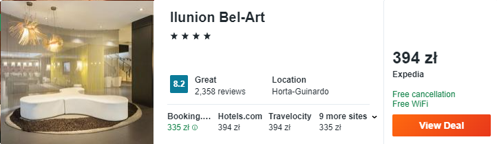 Na czas waszego pobytu w Barcelonie rekomenduję noclegi w 4* hotelu Ilunion Bel-Art. Obiekt jest dobrze skomunikowany z najważniejszymi atrakcjami miasta. Ponadto zapewnia bezpłatny dostęp do Wi-Fi.