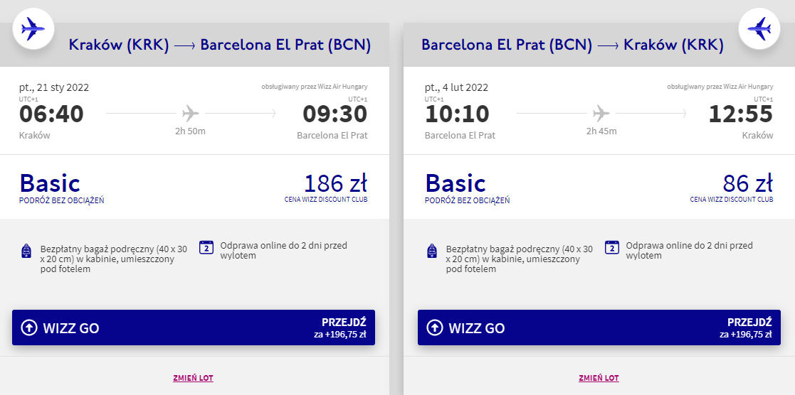 Kraków – Barcelona 21 stycznia