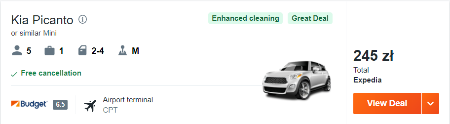 Przylądek Dobrej Nadziei, plaża z pingwinami – Boulders Beach, Góra Stołowa oraz słynna trasa widokowa M6 – Chapman’Peak Drive. Do wszystkich tych miejsc łatwo i wygodnie dojedziecie samochodem. Zachęcam was do wypożyczenia auta zaraz po przylocie do Kapsztadu, ceny zaczynają się już od 35 PLN/doba.