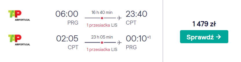 Do Republiki Południowej Afryki udacie się w marcu, np. w terminie 10-18.03. Podróżować będziecie z praskiego lotniska im. Václava Havla linią TAP Air Portugal. Po drodze czekać was będzie zmiana samolotu na lotnisku w Lizbonie – w razie jakichkolwiek opóźnień wynikających z winy przewoźnika, otrzymacie bezpłatnie nowy bilet na dalszą podróż.