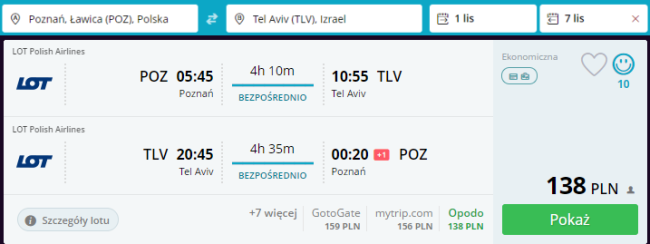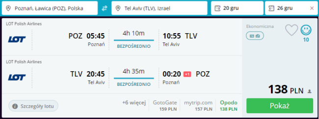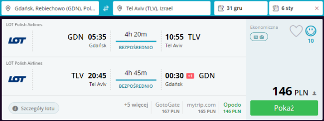 W dalszym ciągu dostępne są świetne ceny za bezpośrednie przeloty do Izraela z polskich portów regionalnych. Terminów podróży jest mnóstwo (również na Boże Narodzenie, Sylwestra lub majówkę!), każdy znajdzie coś dla siebie. Założony na peryferiach starego portu w Jaffie, Tel Awiw jest najbardziej dynamicznie rozwijającym się miastem w Izraelu. Choć nie jest on stolicą, to dla wielu stanowi kulturalne, finansowe oraz polityczne centrum kraju. Długie wybrzeże Morza Śródziemnego, ciepła woda oraz piaszczyste plaże to tylko niektóre atrakcje czekające na odwiedzających. Zainteresowani zastaną na miejscu również bogate życie nocne, kończące się dopiero bladym świtem.
