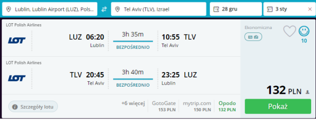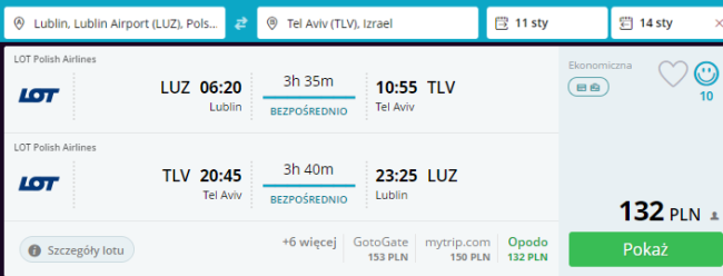 Bardzo tanie podróże PLL LOT do Izraela z Gdańska, Lublina, Poznania i Wrocławia od 132 PLN
