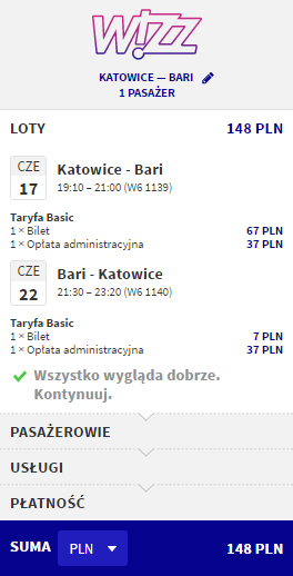 Za bilety zapłacicie dowolną kartą płatniczą. Bez dodatkowych opłat podróżować będziecie tylko z małym bagażem podręcznym o maksymalnych wymiarach 42 x 32 x 25 cm. Najtańsze bilety są dostępne dla członków Wizz Discount Club. Pozostali za bilety zapłacą nieco więcej.