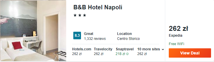 Na czas waszego pobytu w Neapolu polecam noclegi w 3* hotelu B&B zlokalizowanym w pobliżu centrum miasta. Obiekt znajduje się w dzielnicy Mercato, niedaleko dworca centralnego. Poza tym jest dobrze wyposażony i będziecie mieć dostęp do Wi-Fi.