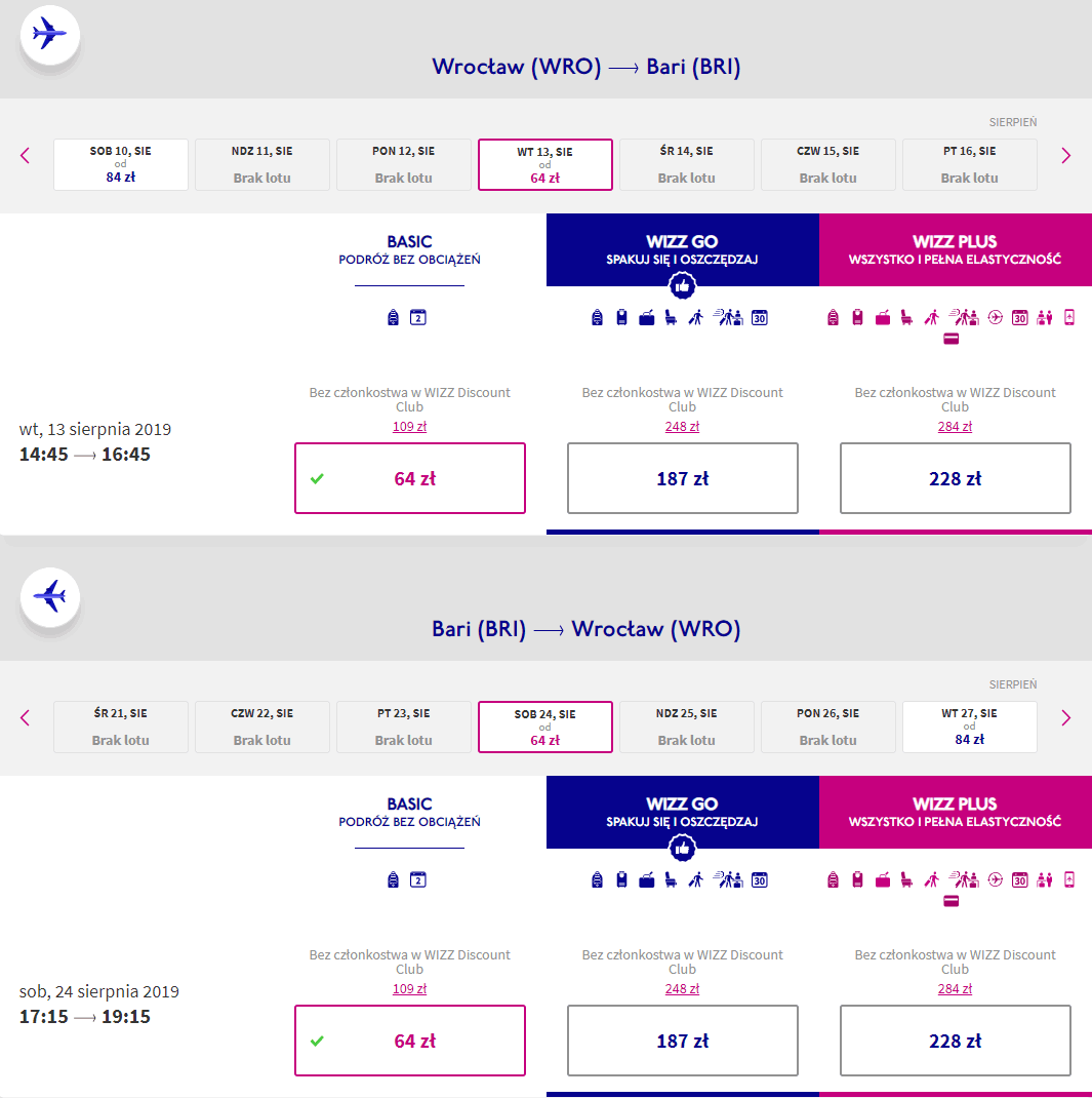 Uwaga: w celu osiągnięcia najniższej ceny po kliknięciu w link spośród dostępnych opcji wybierzcie Wizz Air.