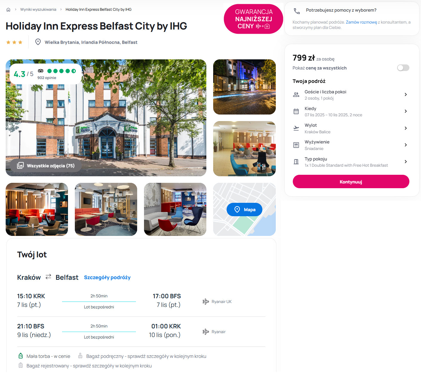 Belfast calling 🥃😲 Idealne godziny lotów (piątek-niedziela) i pobyt w Holiday Inn za 799 PLN ☕🍽️