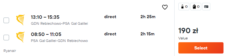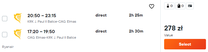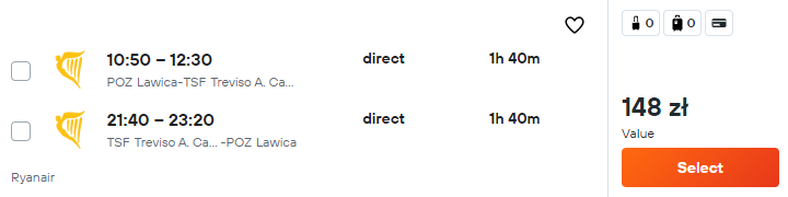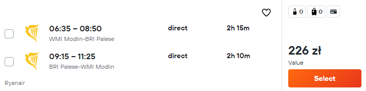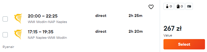 Poniżej znajdziesz wybrane przeze mnie najciekawsze propozycje lotów do Italii. Dostępne są wyloty z kilku miast w Polsce (szczegóły poniżej), a wszystkie podróże to bezpośrednie przeloty realizowane na pokładzie samolotów linii lotniczej Ryanair. Najtańsze możesz zarezerwować już za 148 PLN!