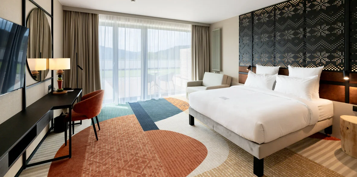 W cenie otrzymasz noclegi w nowoczesnym, komfortowo wyposażonym pokoju z widokiem na góry oraz codzienne śniadania i obiadokolacje w formie bufetu z live cooking. Pakiet obejmuje również dostęp do strefy Water & Fun z basenem, brodzikiem dla dzieci, dwiema zjeżdżalniami, rwącą rzeką oraz jacuzzi wewnętrznym i zewnętrznym. Na terenie obiektu znajduje się także nowoczesna strefa fitness, sala zabaw dla dzieci oraz pokój gier.