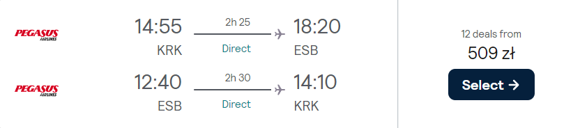 Do Ankary wybierzesz się w terminach pomiędzy wrześniem a październikiem. Czeka cię lot na pokładzie samolotu linii lotniczej Pegasus Airlines, a bez dodatkowych opłat w podróż zabierzesz ze sobą bagaż podręczny.