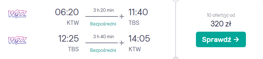 W obie strony polecicie na pokładach samolotów linii lotniczej Wizz Air z wliczonym małym bagażem podręcznym. Bilety w najniższej cenie dostępne są dla wszystkich, do ich zakupu nie są potrzebne żadne kluby zniżkowe.