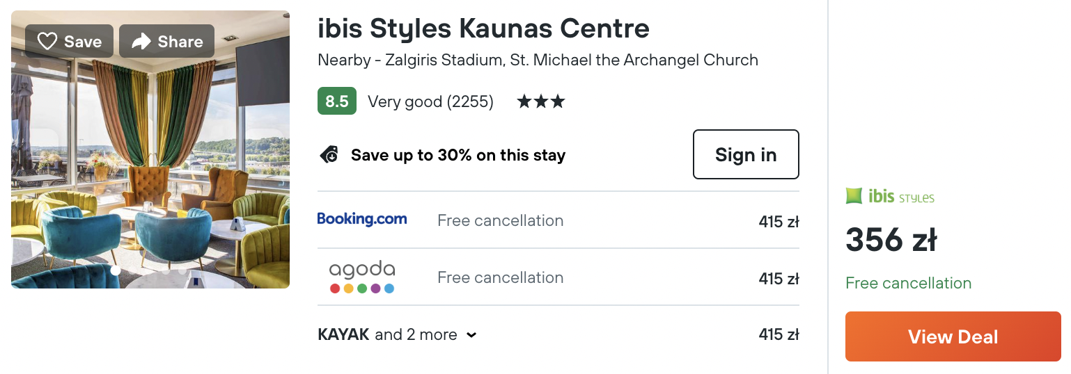 W Kownie wybierz 3* hotel ibis Styles. Do twojej dyspozycji będzie restauracja, bar oraz komfortowy pokój wyposażony w bezpłatne WiFi i ogrzewanie.