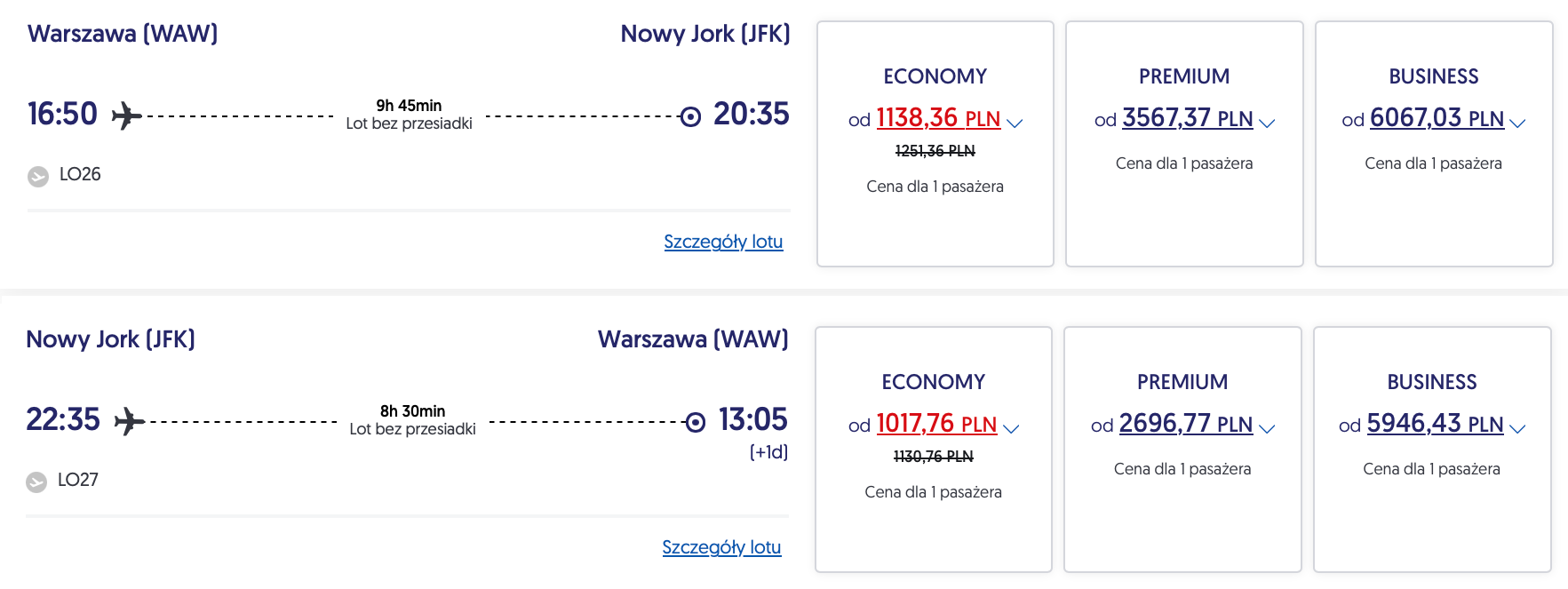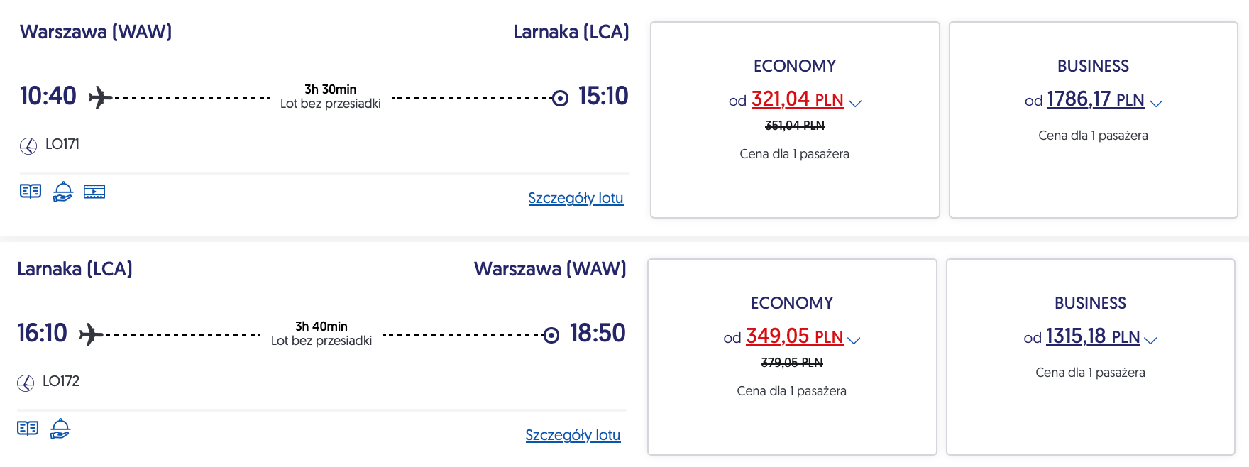 PLL LOT realizują loty z Warszawy, Bydgoszczy, Gdańska, Katowic, Krakowa, Lublina, Olsztyna, Poznania, Rzeszowa, Szczecina, Radomia, Wrocławia i Zielonej Góry.