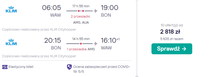 Na wycieczkę na Karaiby polecicie w przyszłym roku, w terminie 5 – 12 lutego. Czeka was podróż z warszawskiego lotniska im. Fryderyka Chopina, realizowana na pokładzie samolotów linii lotniczej KLM. Po drodze zaplanowano krótkie, gwarantowane przez przewoźnika przesiadki w Amsterdamie oraz postój techniczny (bez opuszczania samolotu) na Arubie.