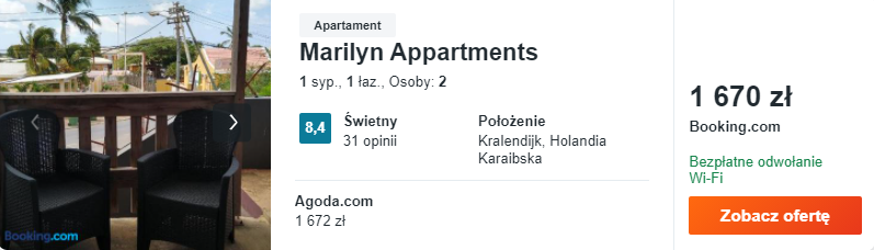 Wybrałem dla was zakwaterowanie w Kralendijk, w pensjonacie Marilyn Apartments. Do waszej dyspozycji będzie przestronne studio, słoneczny taras, bar oraz prywatny parking. Najbliższa plaża znajduje się 500 metrów od obiektu.