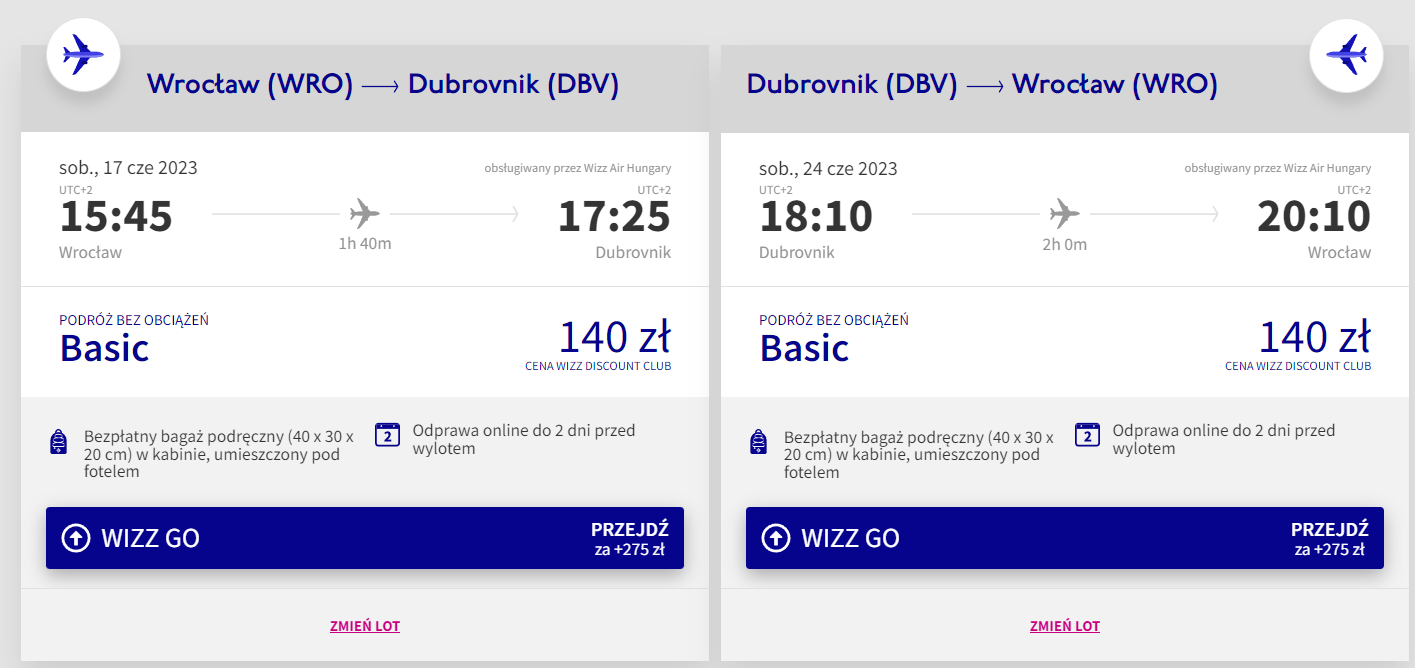 Do Chorwacji polecisz bezpośrednio z Wrocławia, w terminie 17-24 czerwca. Czeka cię podróż na pokładzie samolotu linii lotniczej Wizz Air. Najtańsze bilety zarezerwują członkowie Wizz Discount Club, pozostałe osoby zapłacą nieco więcej. Zaraz po wylądowaniu w Dubrowniku wynajmij samochód, który ułatwi ci zwiedzanie.