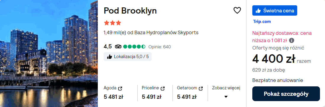 W Nowym Jorku proponuję ci noclegi w 3* hotelu Pod Brooklyn. W każdym pokoju jest łazienka z prysznicem oraz suszarką do włosów. Na terenie całego obiektu będziesz miał zapewniony dostęp do sieci WiFi.