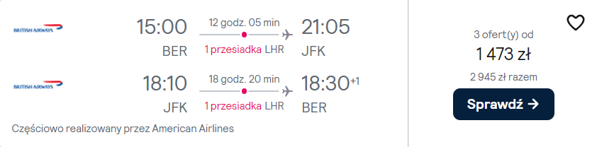 Na wschodnie wybrzeże Stanów Zjednoczonych udasz się z portu lotniczego Berlin Brandenburg, w okresie obejmującym popularne Boże Ciało. W obie strony polecisz liniami American Airlines, British Airways z wygodnymi przesiadkami w Londynie. Na wycieczkę bez dodatkowych kosztów wybierzesz się z bagażem podręcznym oraz przedmiotem osobistym.