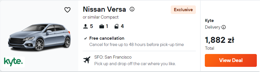 Zaraz po wylądowaniu w San Francisco polecam ci wynająć samochód, który ułatwi zwiedzanie okolicznych atrakcji.