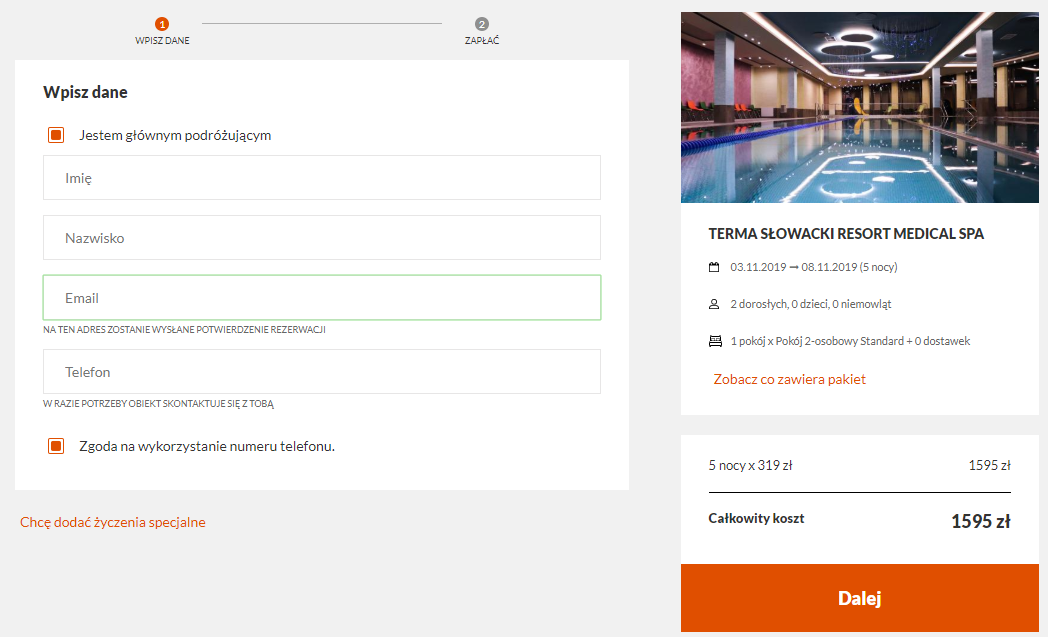 - pobyt zaczyna się kolacją, kończy śniadaniem