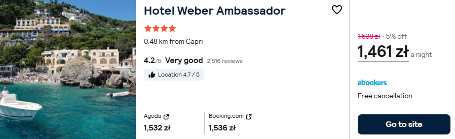 Skorzystaj z obniżki i zaszalej na Capri. Wybierzświetny 4* hotel Weber Ambassador. Spędzanie czasu w obiekcie tej klasy będzie przyjemnością samą w sobie.