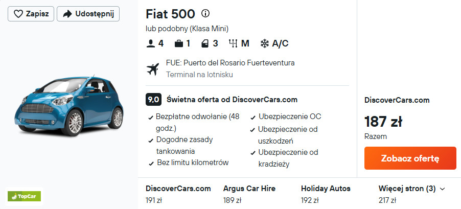Mając do swojej dyspozycji auto, łatwo i wygodnie dojedziesz z lotniska do hotelu oraz w różne rejony Fuerteventury.