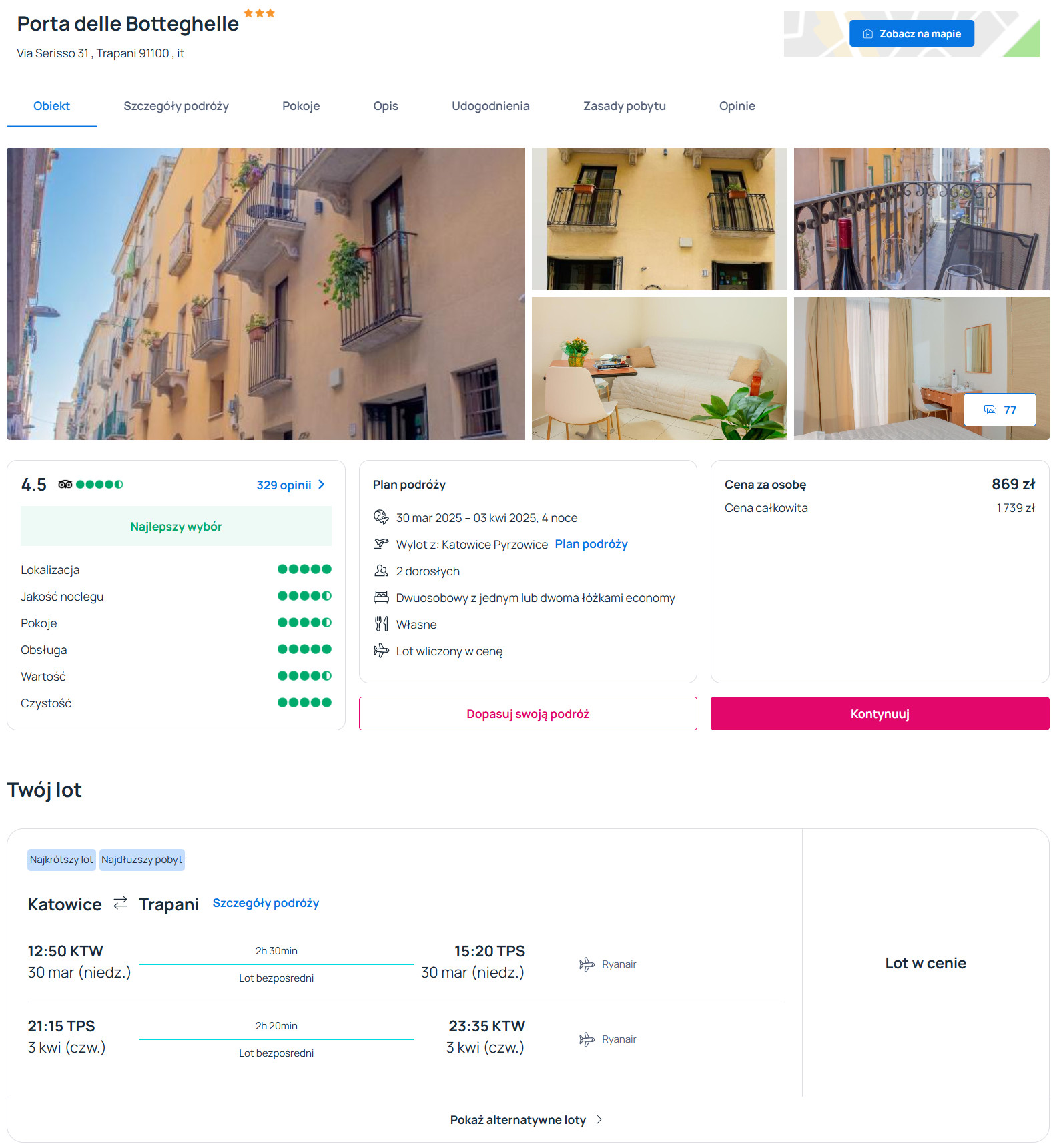 Do Trapani udasz się z Katowic na przełomie marca i kwietnia. W obie strony polecisz bezpośrednio linią Ryanair z bagażem podręcznym.