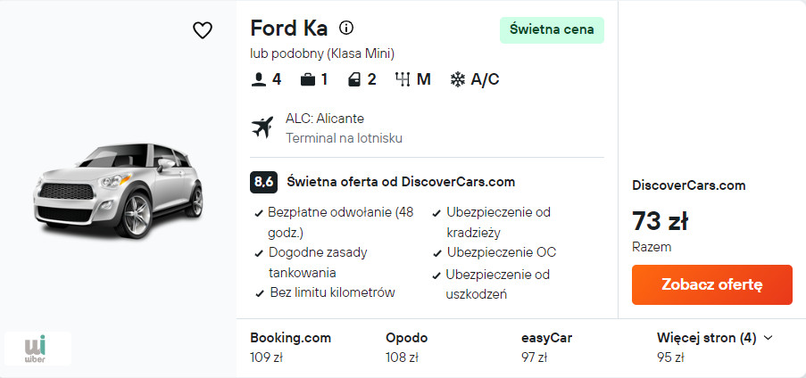 Wypożycz samochód po przylocie do Alicante. Mając do swojej dyspozycji auto, łatwo i wygodnie dojedziesz m.in. do Benidormu czy Calpe.